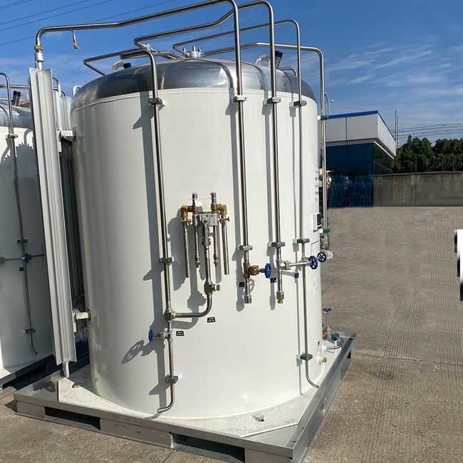 マイクロ バルク低温学タンクは5立方メートルの下でそしてマイクロ バルク液体酸素、液体窒素、液体二酸化炭素の貯蔵タンクおよび他の圧力容器に分けられる3.6MPaまで一般に圧力の低温の液体ガスのための小さい貯蔵タンクを示す。